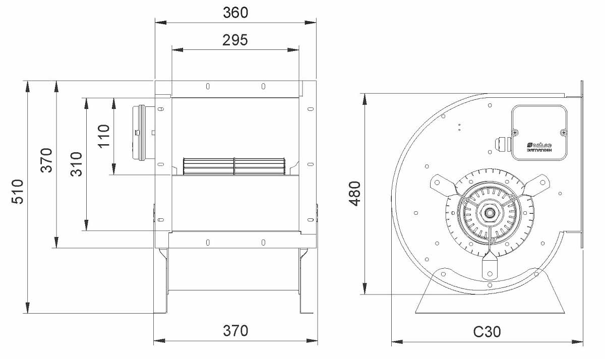 فن سانتریفیوژ 25 سانت دو طرفه فوروارد دمنده بسیار قدرتمند بوده جنس بدنه و پروانه این هواکش دمنده از گالوانیزه است که در برابر زنگ زدگی مقاوم میباشد.