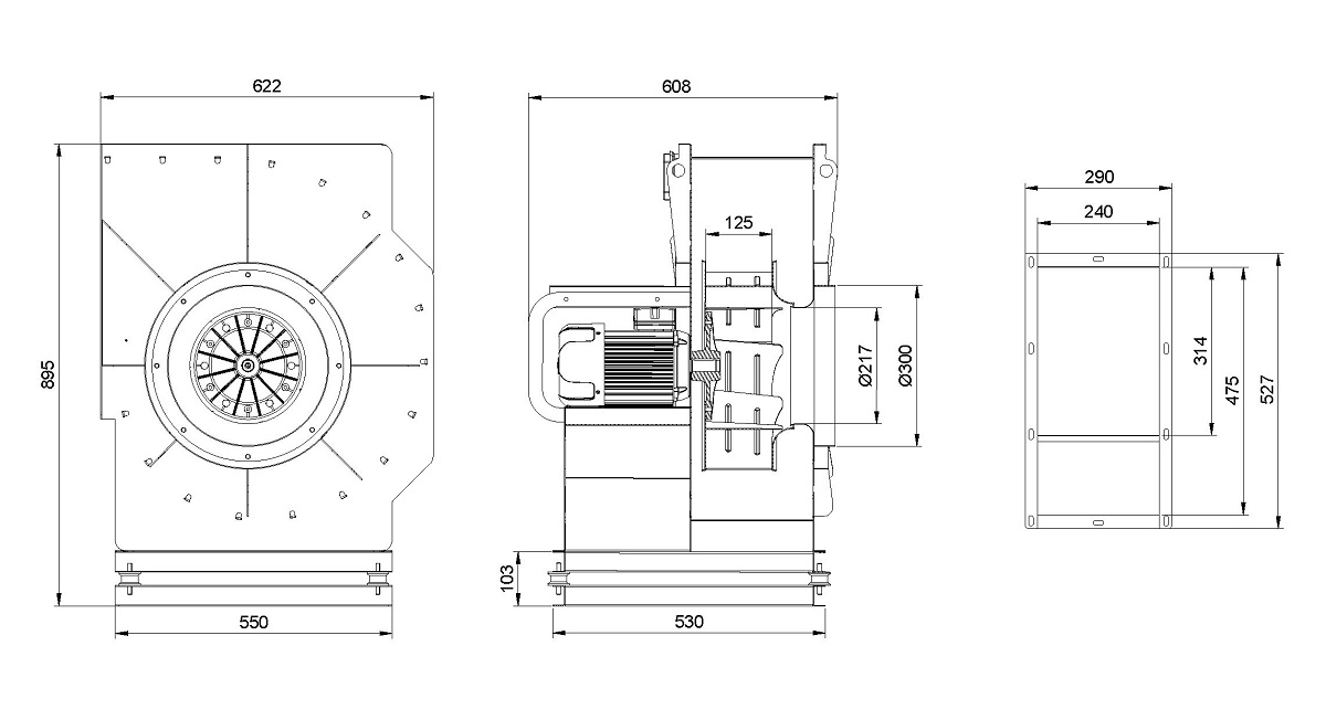 وزن آن 48 کیلوگرم است و دارای قطر پروانه 40 سانتی متری بوده و ولتاژ آن تک فاز 220 ولت است. شدت جریان این سانتریفیوژ 3 آمپر و توان آن 630 وات میباشد. دور موتور این دستگاه 1400 دور در دقیقه بوده و رنج هوادهی آن 3700 مترمکعب بر ساعت است. درجه محافظت موتور این هواکش صنعتی نیز ip55 است.